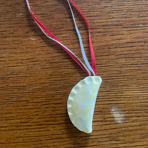 I had mentioned to my son that I needed to start getting new ornaments for my tree. That is how this pierogi ornament came to be. He flipped our tradition and bought me one this year! A pierogi is an important part of my family’s Christmas Eve traditions and I make about 300 each year to eat and share. When I opened the box and found it inside, happy tears crested in my eyes.