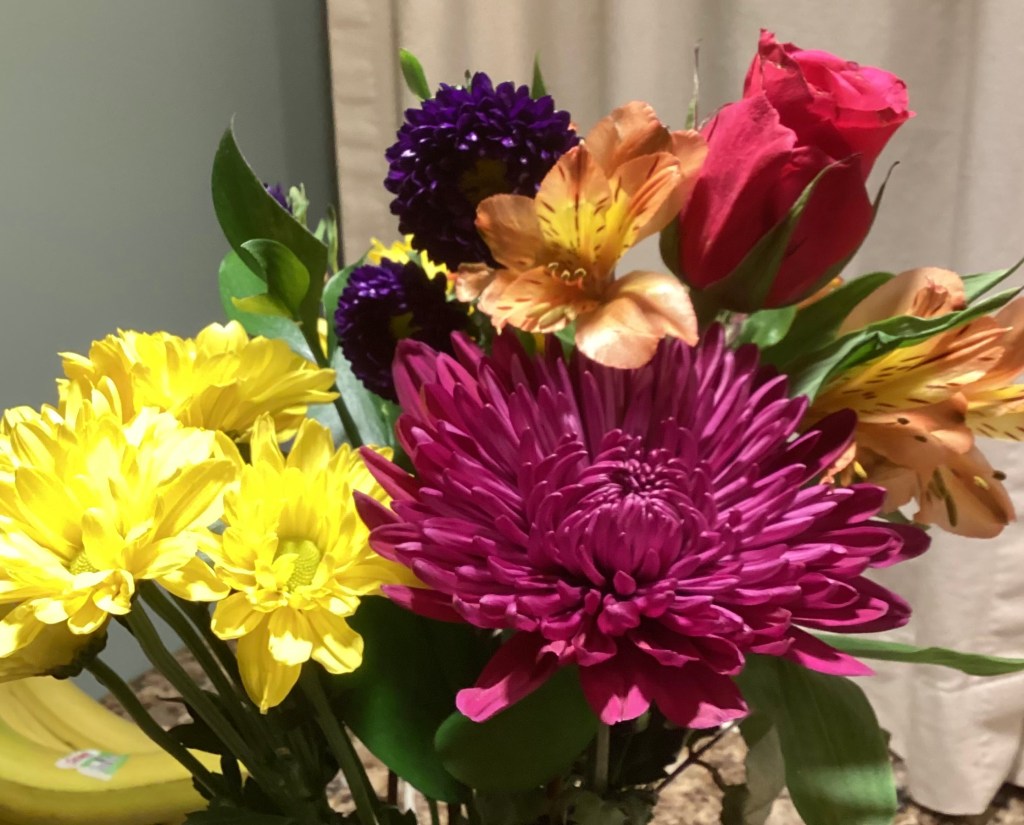 I came home to a surprise bouquet of flowers sitting on my counter. Immediately a smile spread across my face. The flowers performed well and brought joy to their audience. I applaud their work. Bravo!