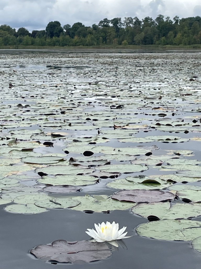 As I pushed off from shore, a feeling of delight beat in my heart. Immediately, I pulled up to a beautiful white water lily with a bright yellow center and just admired its beauty for a few moments. A little bit later, I just floated and watched two herons standing still as statues. The reflection on the ultra calm waters gave pause for acknowledgement as well.